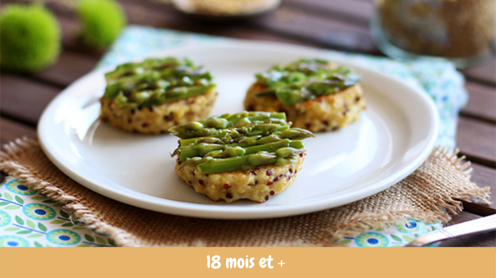Ces galettes constituent un repas complet pour bébé. Le quinoa et l’oeuf apporteront les protéines nécessaires à la croissance de votre enfant. Inutile de rajouter une portion de viande ou de poisson avec ces galettes.