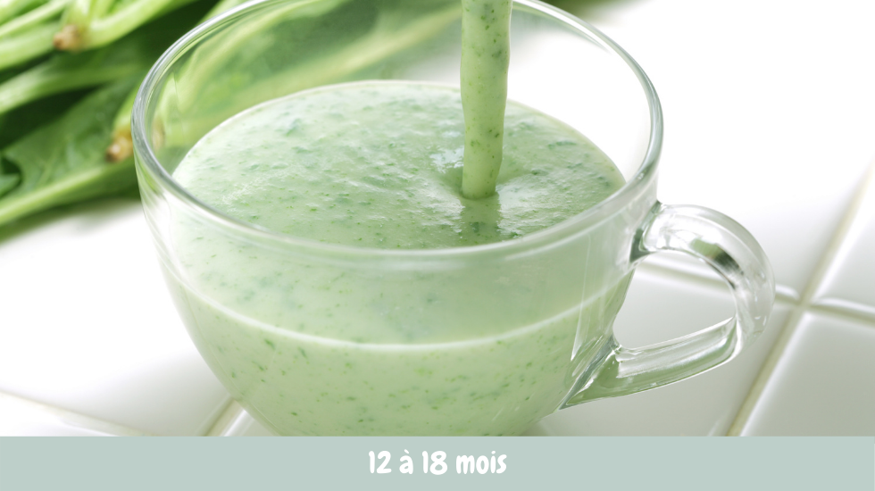 Placez la banane, les pousses d’épinards, le lait et le sucre dans le bol mixeur du Nutribaby(+) et mixez jusqu’à obtenir une texture bien veloutée et onctueuse.